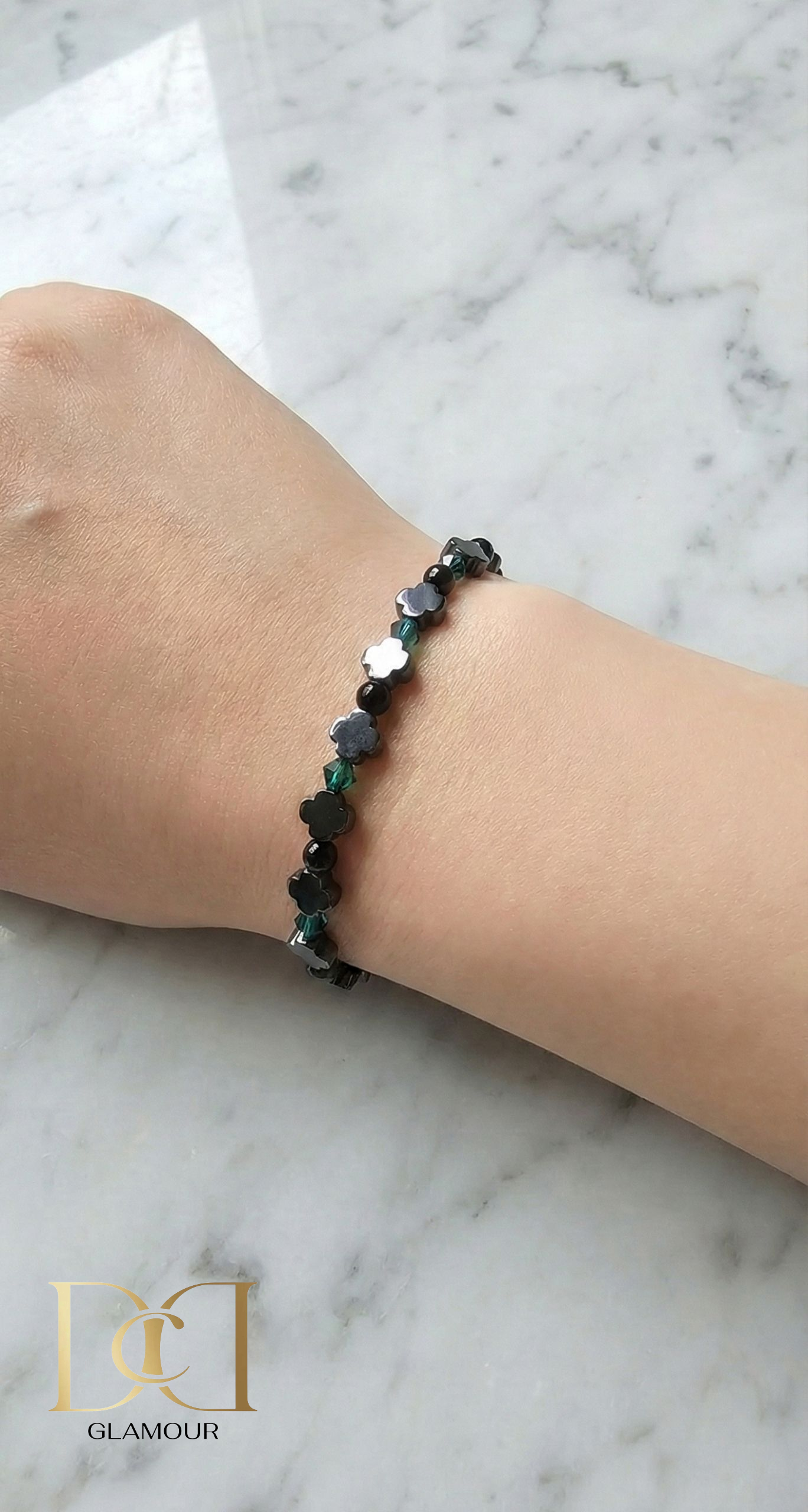 Esmerald Noire blends deep hematite with emerald tones to create a bracelet that feels powerful yet polished. Designed for the client who wants depth, contrast, and versatility in one piece, it adds an elegant edge to any outfit — from casual days to midnight moments.