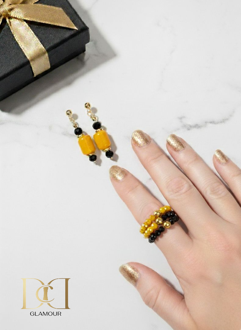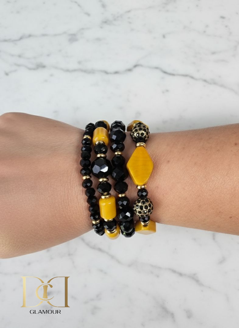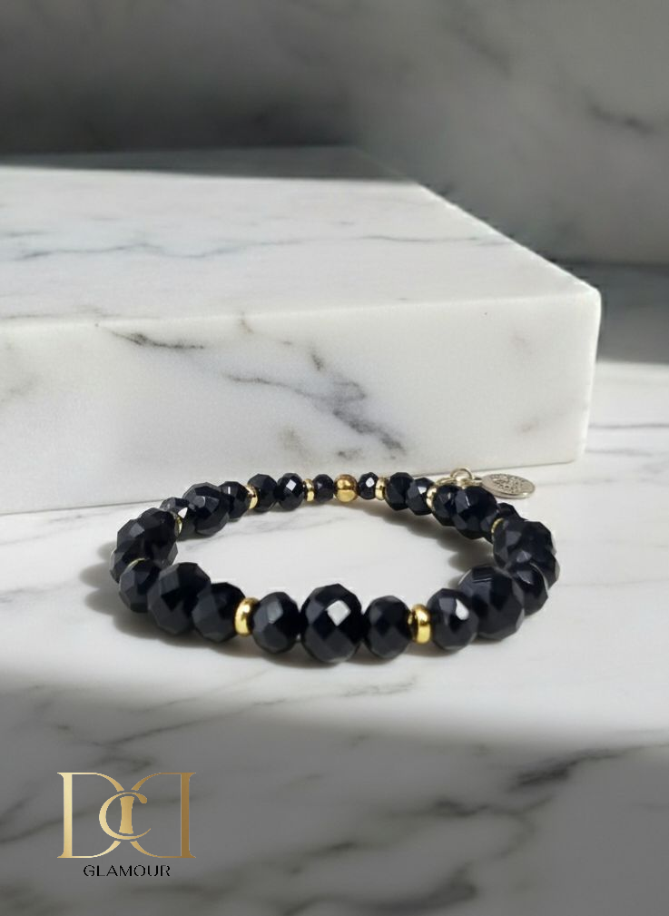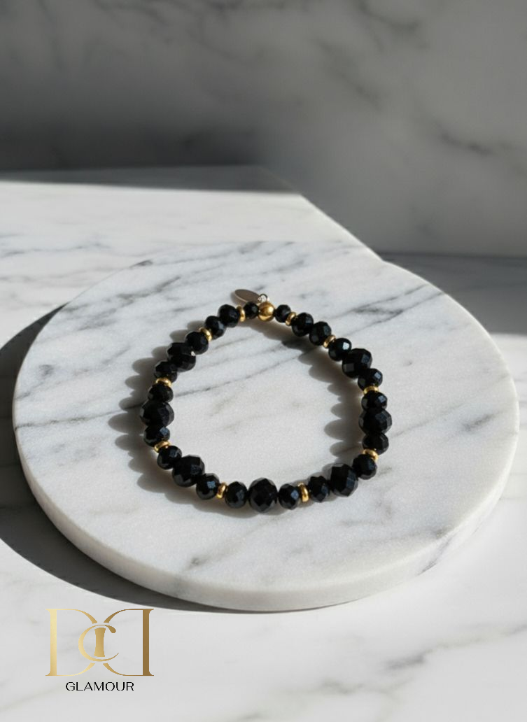 Black Glass, Gold-Plated Brass and Elastic Cord