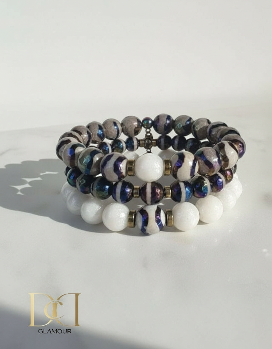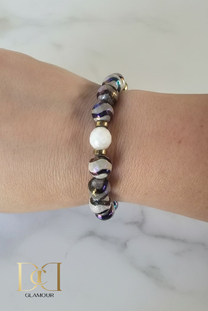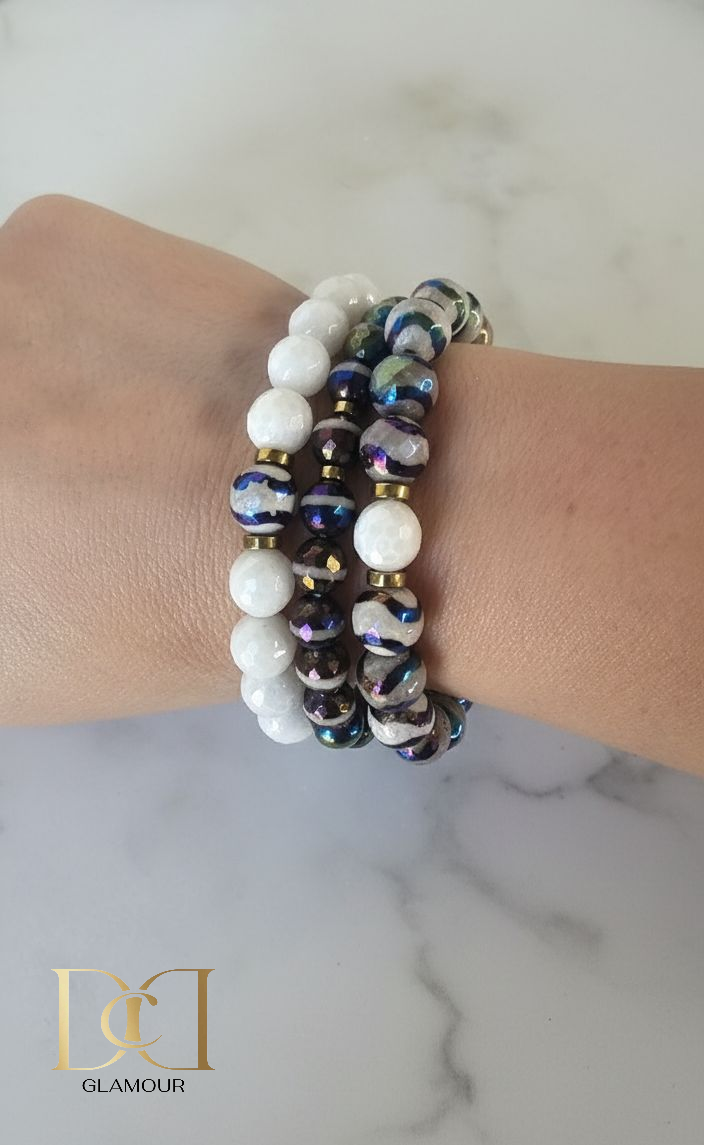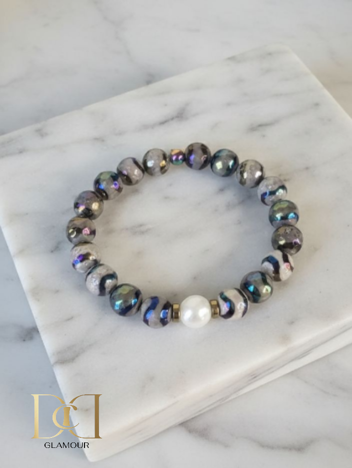 The Arctic Mirage Bracelet captures the mesmerizing beauty of winter nights — subtle, mysterious, and irresistibly unique. Each bead features natural wave-like patterns and iridescent flashes that shift with the light, offering endless visual interest. This is the bracelet for women who want pieces that feel truly one-of-a-kind and effortlessly elevate both casual and elegant outfits.