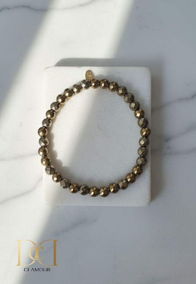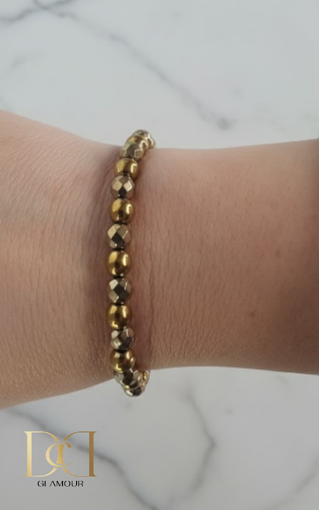 Antique Gold Hematite and Elastic Cord.