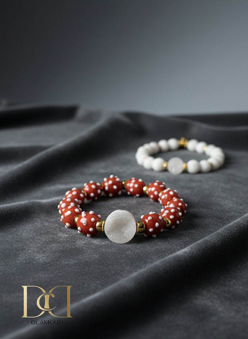 The Frosted Ember Bracelet captures the beauty of contrasting elements, designed for the woman who moves through life with elegance and poise. Its elements harmonize the warmth of autumn with the subtle shimmer of winter, offering a timeless accent that enhances her style while reflecting resilience, sophistication, and the quiet refinement she carries in every moment.