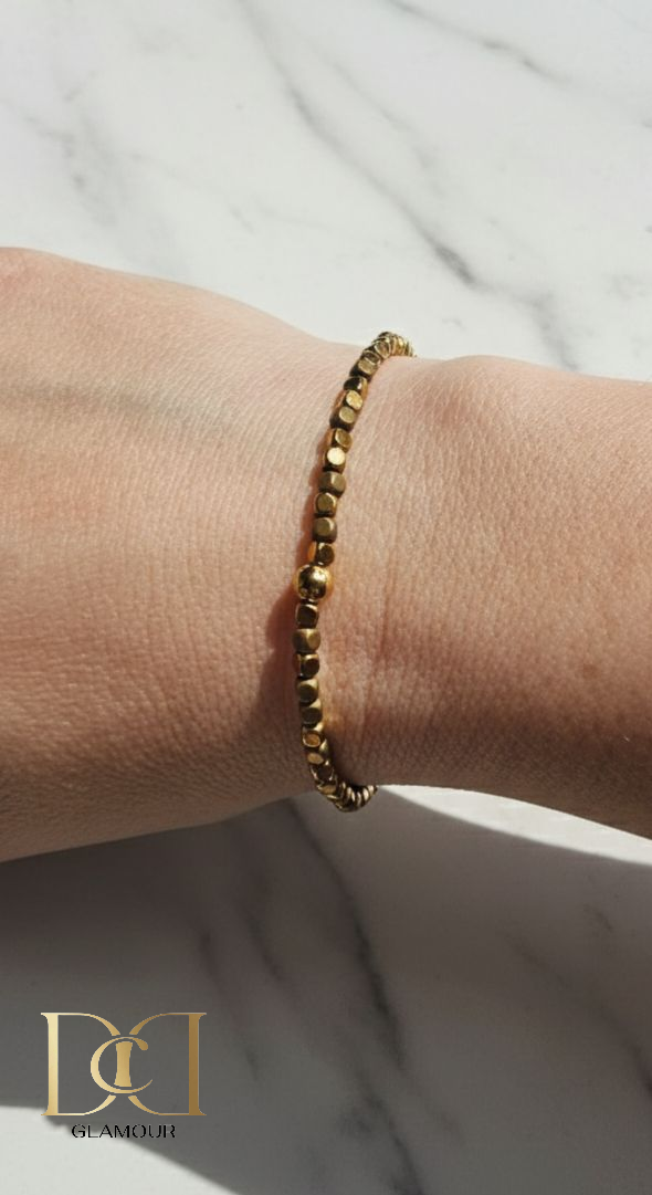Antique Gold Hematite and Elastic Cord.
