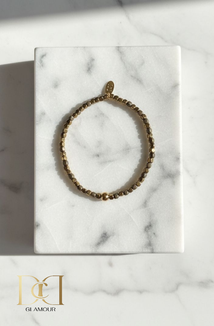 Nocturne Gold Bracelet delivers sleek, understated elegance. Its deep golden tone adds a refined glow to any outfit, making it the perfect everyday luxury piece.