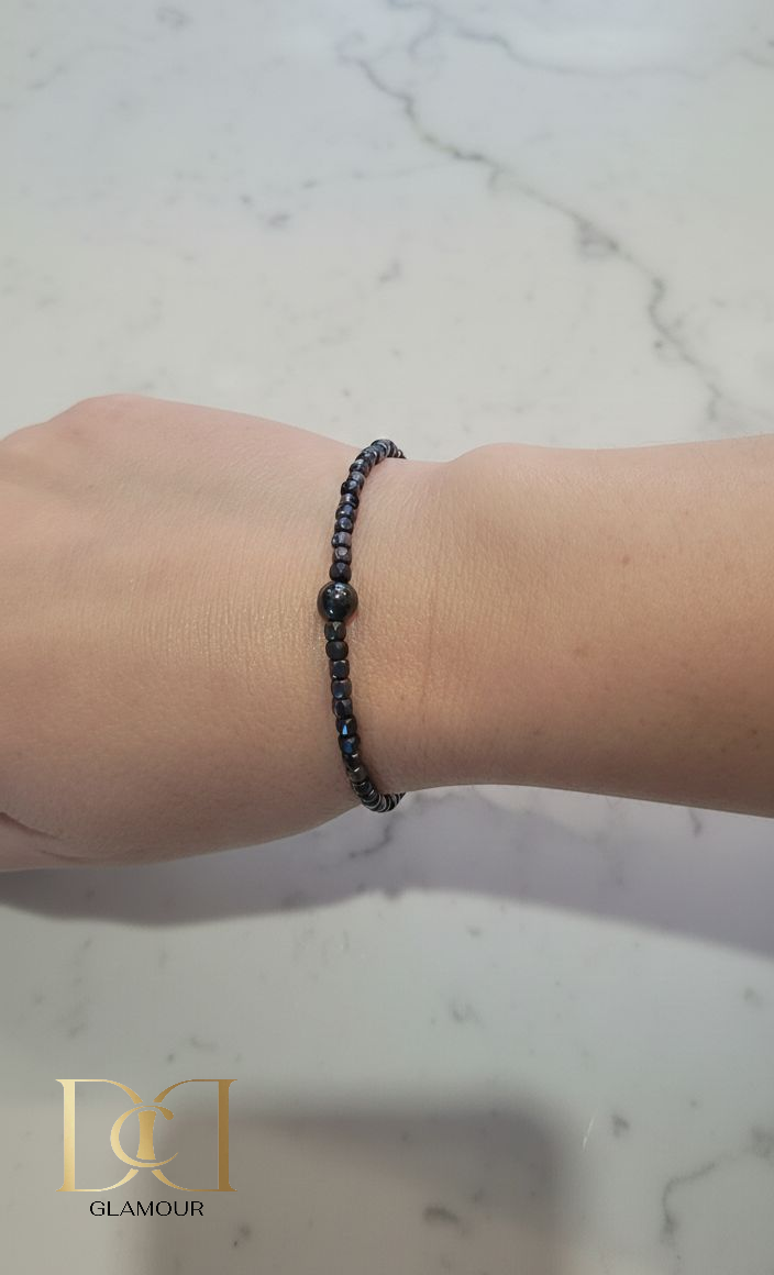 For the woman who loves bold minimalism, the Shadow Poise Bracelet offers a refined touch of strength that elevates her look instantly. Its deep charcoal tone adds depth without overpowering her style, solving the challenge of finding a unique accessory that still blends naturally into her wardrobe. A quiet statement for confident, modern elegance.