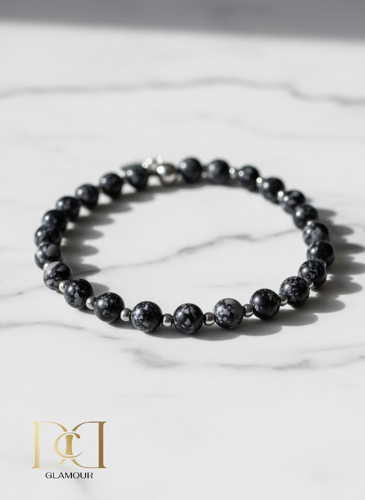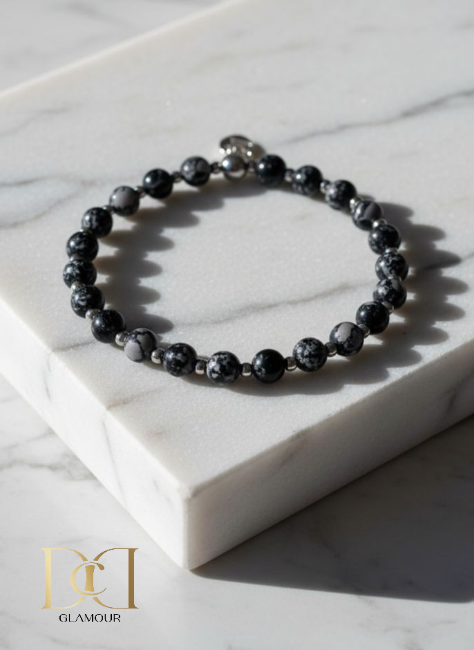 Stainless Steel, Snowflake Jasper and Elastic Cord